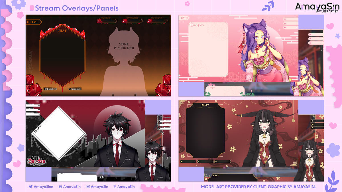 Premium - $85 USD (Full Overlay Package)Canvas Size: 1920 x 1080pxFull Package: Starting, Chatting, BRB, Gaming, Ending & Panels